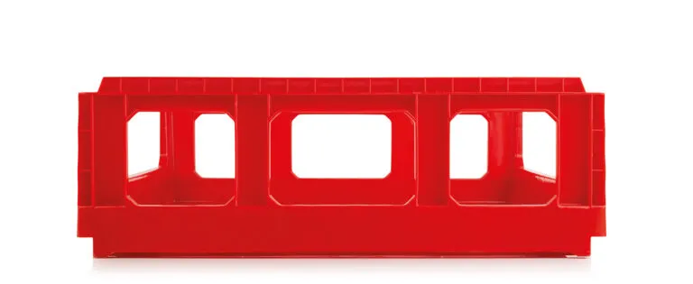 This strong and durable bread crate is high pressure plastic injection moulded and made from HDPE (high density polyethylene). The bread crate is also available in PP (polypropene). Original design, standard in height and size. Nests and stacks with all current plastic bread crates on the market.
